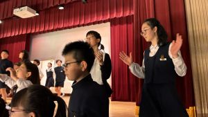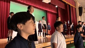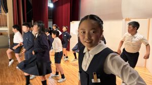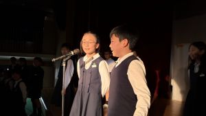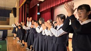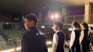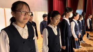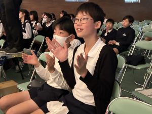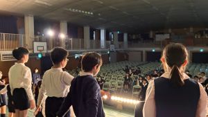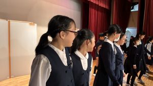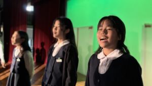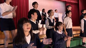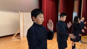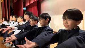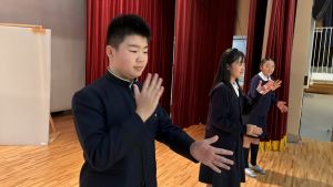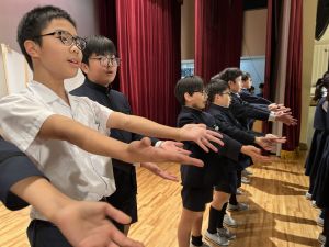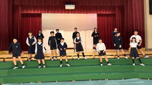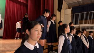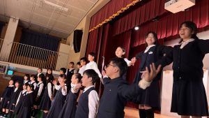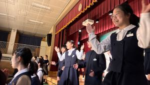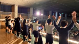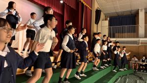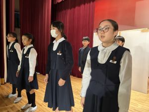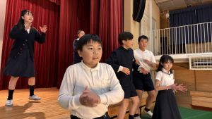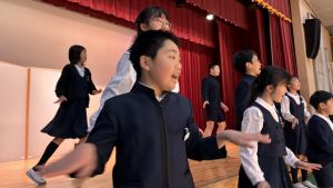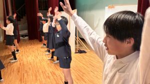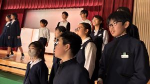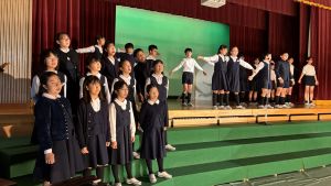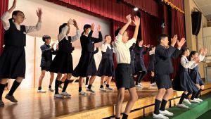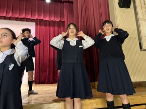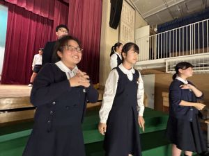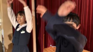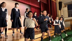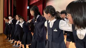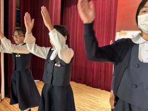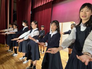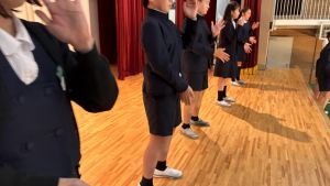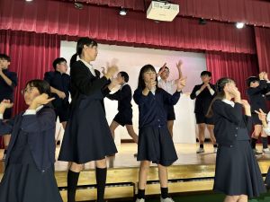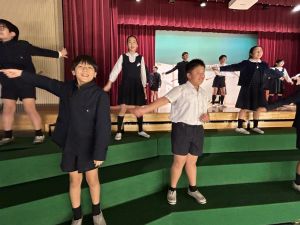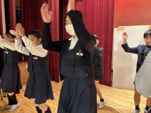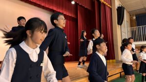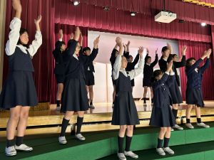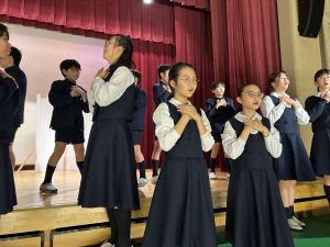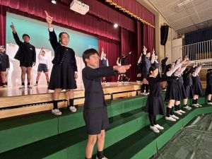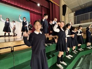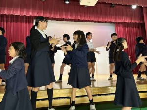 1時間目にはダンスと歌の練習、そして5・6時間目には講堂での練習を行いました。ほとんどの曲にダンスがあります。踊りながら歌うので,とても難しいですが,めきめきと上達しています!!