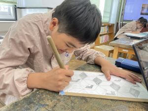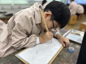 ランプシェードは、暗い場所で光を通して楽しむ作品です。そのため、幽霊のような夜をイメージしたデザインや、光で浮かび上がる美しい文様、自分の好きなキャラクターやモチーフを取り入れるなど、子どもたちは思い思いの工夫を凝らしています。