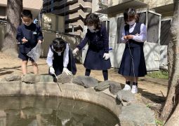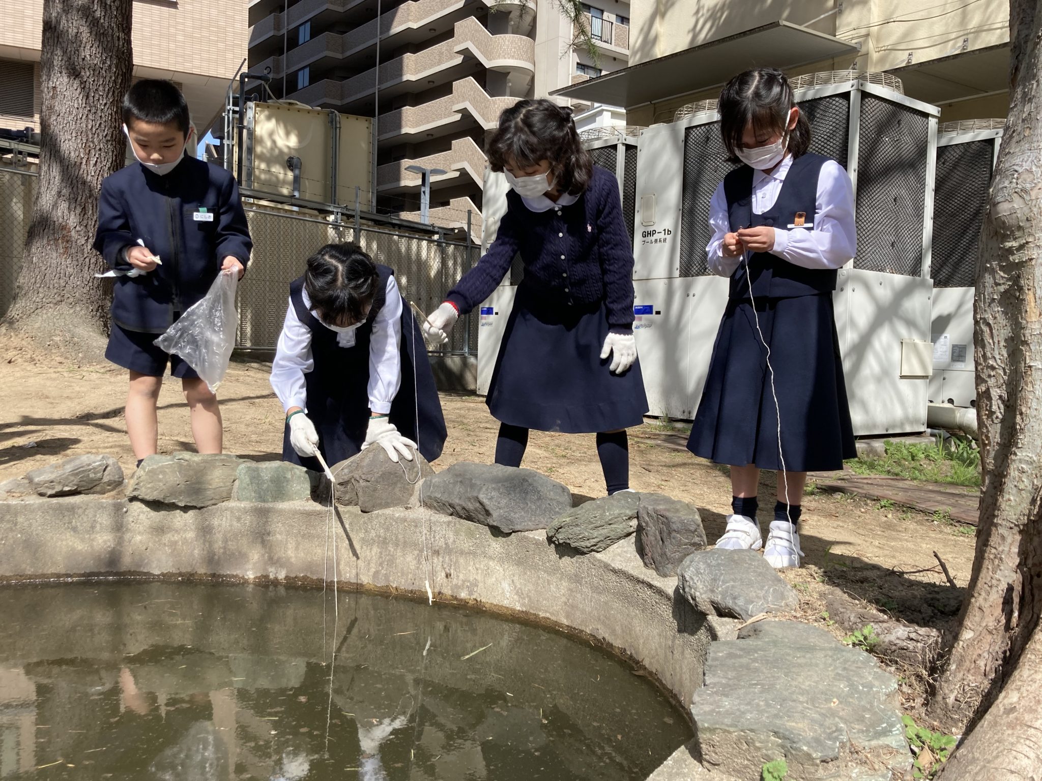 今日は、1年生最後の昼休みでした。それぞれが、一輪車をしたり、大繩をしたりと楽しい時間を過ごしていました。ザリガニ釣りの道具を持ってきていた子もいたので、再チャレンジしました。今日は、ザリガニが餌に食いつき、少し釣れたのですが、残念ながら逃げられてしまいました。「2年生になったら、またチャレンジする!」とどの子も意気込んでいました。