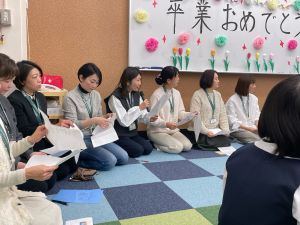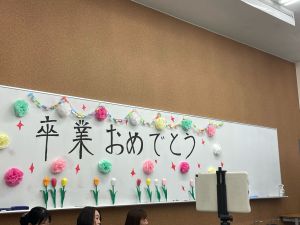2つ目の贈り物は「読み語り」。PTA図書委員会の保護者の皆様による卒業する6年生へ向けて最後の「読み語り」をしました。ふくろうルームには「卒業おめでとう」の文字が。