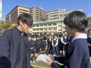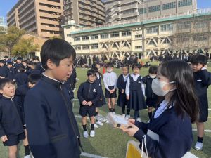1つ目は、通学班からの卒業プレゼント。6年間の通学班活動が終わりを迎えました。