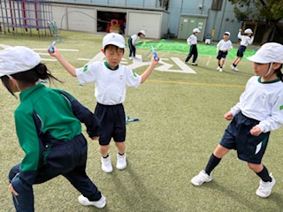 授業のはじめ跳べなかった子も、お友達のアドバイスをもらうと、跳べるようになってびっくり。お友達の力って、すごいね。
