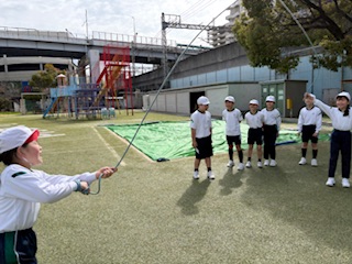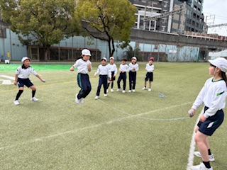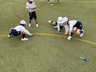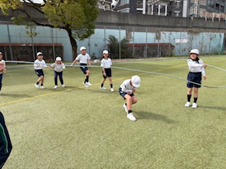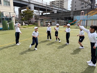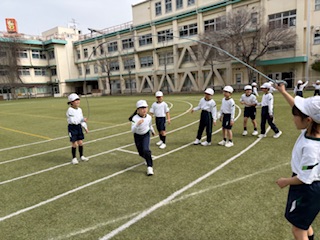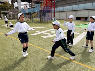 同じなわでも、重さや長さ、太さ、回す人数が変わり、また考えることがたくさん。どうすれば、みんな跳べるようになるかな、また跳べるようになってきたら、一回でも多く跳べるようにチャレンジしました。