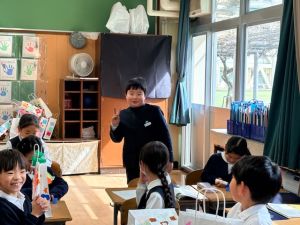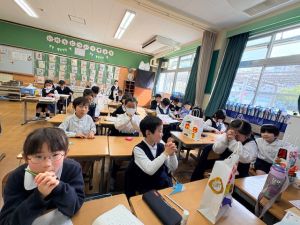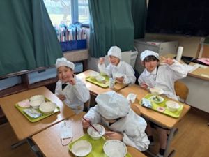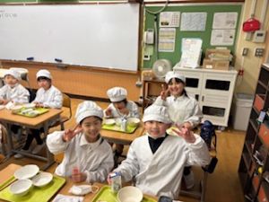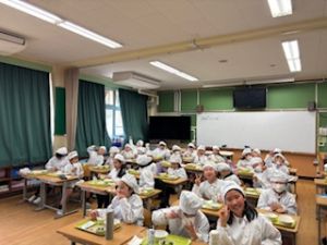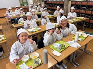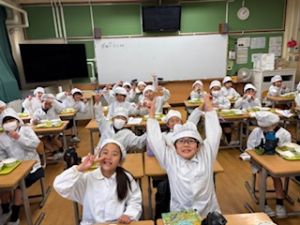 そして、給食中は、みんなが待ちに待った仁井聡子さんのラジオ!みんなでいろんな音楽と仁井さんの話術にみんなわくわくでした。