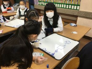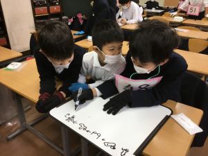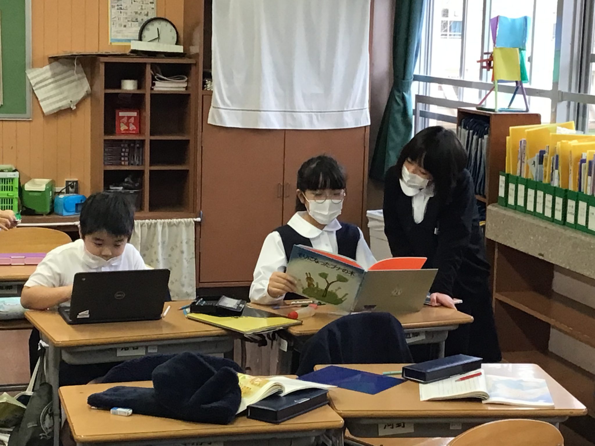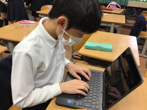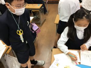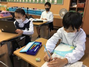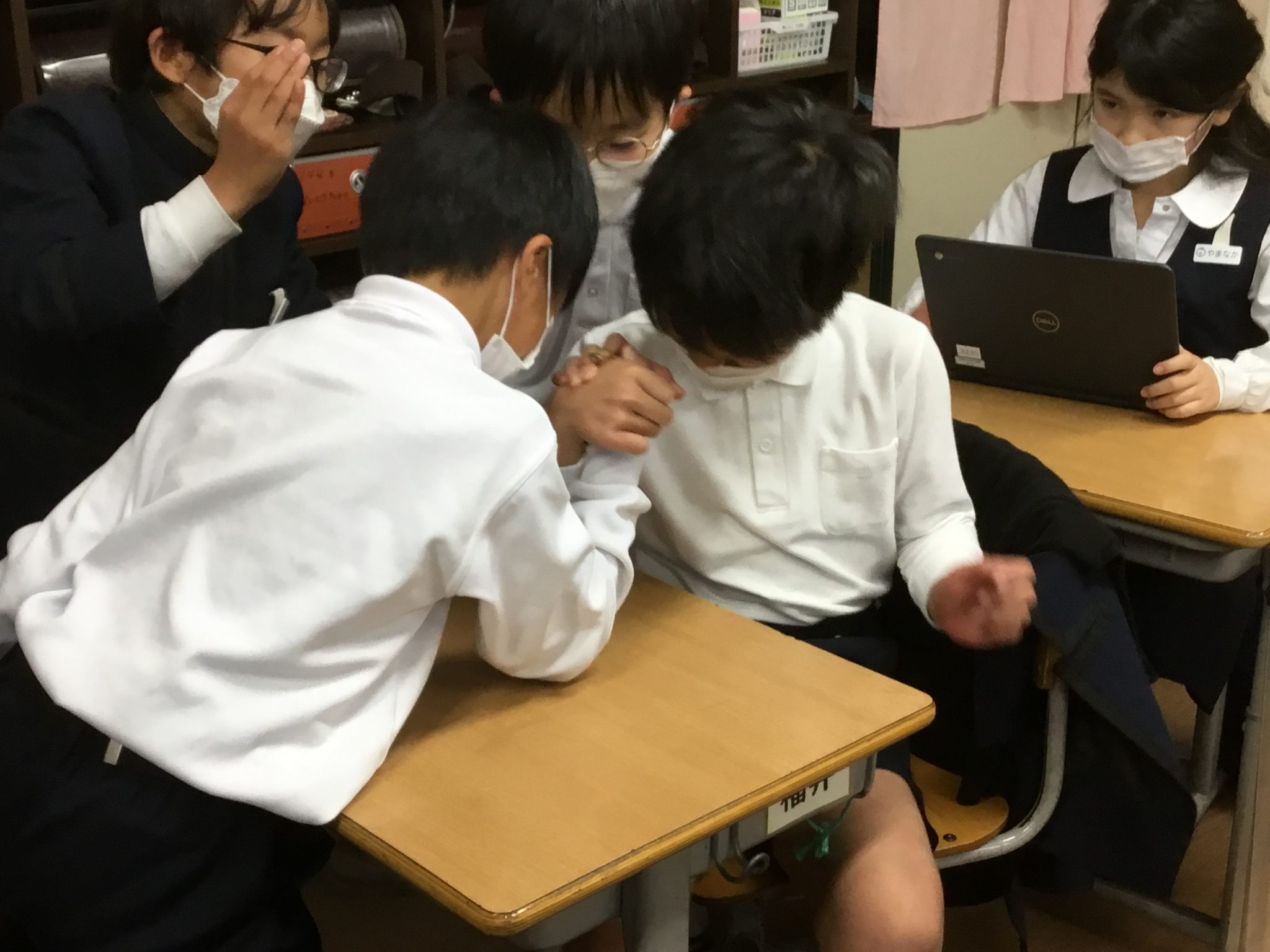 休み時間、教室では、クロームブックでタイピング練習をしたり、トリオタイムで行う予定の読み聞かせの練習をしたり、漫才を披露したり腕相撲をしたりして過ごしていました。思い切りというわけにはいきませんが、静かに過ごせるように工夫して過ごすことができました。明日は晴れると良いですね!