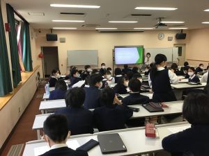 今日は総合学習の一環として、本校卒業生の中川真緒さんに来ていただきました。