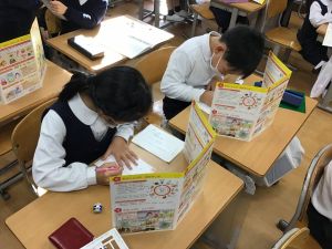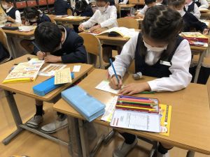 「来年は寅年やで。ぼくはへび年やけど!」という話をしながら、それぞれが年賀状を送る人の顔を思い浮かべながら新年のあいさつ文やメッセージ、絵を丁寧に書いていきました。住所を書く際には、長い住所を小さな枠内に書くのに苦戦している子もいましたが、何とか書き上げることができました。本日、おうちに持ち帰らせていますので、住所を確認の上、ポストに投函していただけるとありがたいです。(年賀状の投函は今日から始まっています。郵送先の住所を書き忘れてきた子は空白にしていますので、おうちで記入してください)