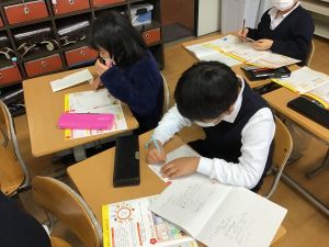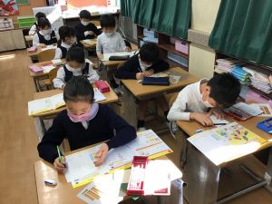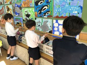 「来年は寅年やで。ぼくはへび年やけど!」という話をしながら、それぞれが年賀状を送る人の顔を思い浮かべながら新年のあいさつ文やメッセージ、絵を丁寧に書いていきました。住所を書く際には、長い住所を小さな枠内に書くのに苦戦している子もいましたが、何とか書き上げることができました。本日、おうちに持ち帰らせていますので、住所を確認の上、ポストに投函していただけるとありがたいです。(年賀状の投函は今日から始まっています。郵送先の住所を書き忘れてきた子は空白にしていますので、おうちで記入してください)