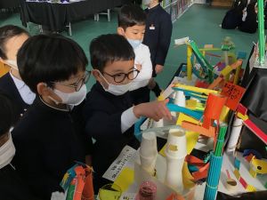 子供達は自分の作品を見つけて嬉しそうに教えてくれたり、他の学年のすごい作品を紹介してくれたりしました。