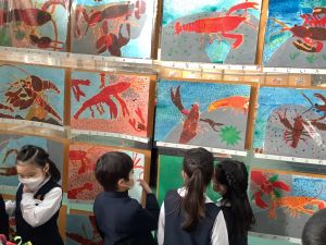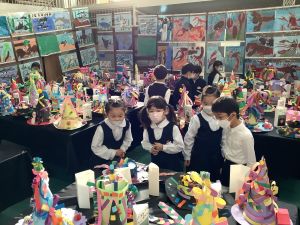 今日は、みんなが一生懸命作った作品が飾られているアート展をみにいきました。