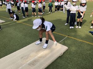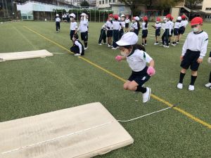 今日の体育は、立ち幅跳びを行いました。スポーツテストの最後の種目です。腕を大きく振って、遠くに着地!何度か練習をして、記録を測りました。待っている間は、グループで大縄跳び。少しずつ連続で跳べる回数が増えてきているようです。年明けは、単縄もがんばっていきたいと思います。