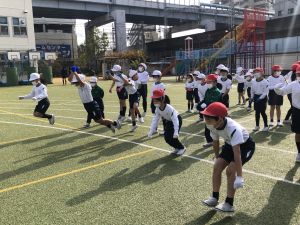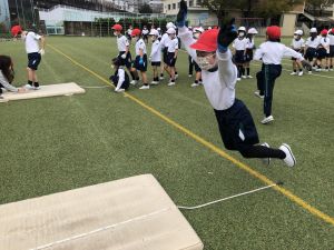 今日の体育は、立ち幅跳びを行いました。スポーツテストの最後の種目です。腕を大きく振って、遠くに着地!何度か練習をして、記録を測りました。待っている間は、グループで大縄跳び。少しずつ連続で跳べる回数が増えてきているようです。年明けは、単縄もがんばっていきたいと思います。