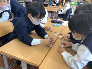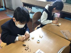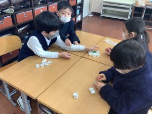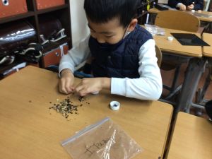 算数では、以前とったあさがおのたねを数えるという活動を行いました。