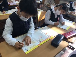 来年は寅年ということで、抱負を考えて書きました。今回は学校のことを中心に考えます。学習面や生活面、休み時間のことなど、子どもたちの想いがいろいろと表れていました。