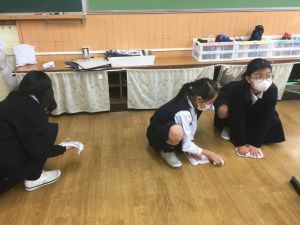コロナ禍になってから、クラス全員で掃除をするということはなくなりましたが、今日は特別です。全員で普段、なかなか落とせない汚れを落としていきました。5年生ともなると、自分で掃除できるところを探して、掃除することができ、中には階段や職員室前の廊下まで掃除をしてくれていた人もいたそうです。自分のクラスだけがきれいになればよいのではなく、学校全体が綺麗になるように考えることは、高学年としてすばらしいなと思いました。教室もすっきりきれいになったので、新たな気持ちで、新年を迎えることができそうです。