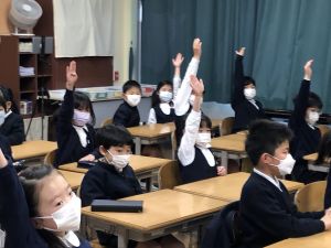 今日は、特別活動の時間に「ぼうさい」科の授業をしました。