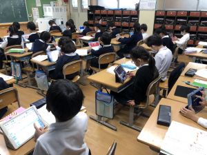 今日の国語は、休校時のオンライン学習でした「楽しかったよ、二年生」の続きをしました。オンラインのときに作成した課題のシートを活用しながら、今日は文章の組み立てを考えました。教科書の見本の文章を参考に、「はじめ」と「おわり」のつながりを考えながら、自分の伝えたいことに合わせて書いていきました。多くの子は「はじめ」「おわり」はできましたが、「なか」の部分は、まだできていません。「なか」を考えて原稿を仕上げることが、明日の「読み・書き・算・音タイム」の課題です。「なか」の部分は、経験したことを具体的に順序立てて書いていきます。そこに、その人らしさが表れてきます。どんな「なか」ができるのか、楽しみですね。