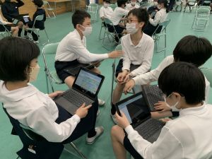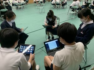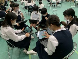と悩んでいる様子が見られました。簡単に乗り越えることのできない課題だからこそ、乗り越えていく価値があると思います。ロイロノートをうまく活用したり、Jamboardを共同編集で活用したり、状況に合わせて、chromebookも活用しながら、考えていました。