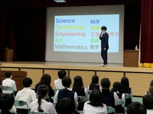 はじめに松村先生から、STEAMについてのお話がありました。松村先生から、「科学者や数学者のように考え、芸術家やエンジニアのように創り出す学び」ということから、ワクワクするようなことを見つけ出して、追求していこうという話がありました。しかし、それだけではどんなことを行っていけばよいのか、見当もつかないでしょう。