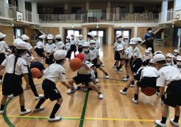 その後は、いろいろな走り方にチャレンジしたり、各クラスの4列対抗でボール送りなどにもチャレンジしました。自分のチームが終わっても、友だちのチームを「がんばれ!がんばれ!」と応援することができる、146期の素敵な姿が見られ、とても楽しい時間になりました。さて、次回の体育。「体操隊形にひらけ!」の号令でさっと動けるでしょうか?