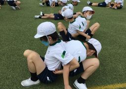 体を動かすとともに、友だちとの協力する活動になりました。雨が降ってくる前に元気いっぱい体を動かせてよかったです。