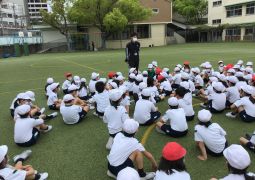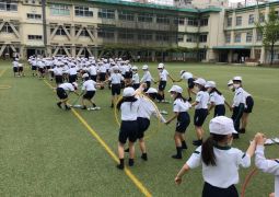 2時間目の体育科は前時に引き続き、学年みんなで学習しました。