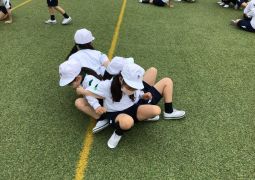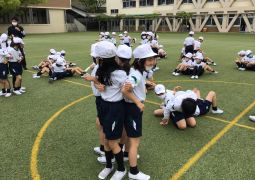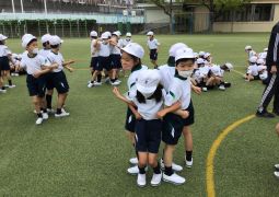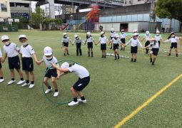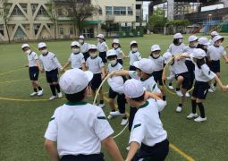 体を動かすとともに、友だちとの協力する活動になりました。雨が降ってくる前に元気いっぱい体を動かせてよかったです。