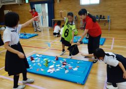 5つの活動のなかには、PTAレクリエーション委員会の「ジェスチャーゲーム」「さかな釣り」「たまいれ」がありました。慣れ親しんだ保護者の方々がゲームを進行してくださることもあり、子どもたちはいつも以上にリラックスした雰囲気で活動していました。
