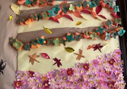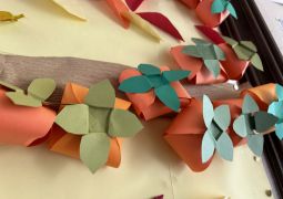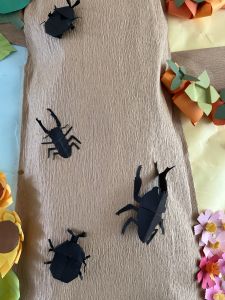 子どもたちは「お花の形を立体にするのは難しい。」「一つ一つの花びらの形が揃わない!」と苦戦しながらも「それも個性だよ。」と話しながら笑い合い、楽しく作っていました。