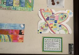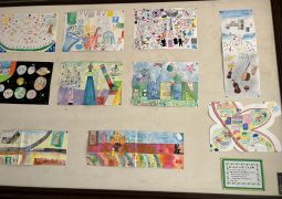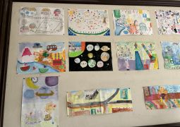 隣に飾っている面白そうな絵画は、「あったらいい町 どんな町」と題して、実際にはない町を子どもたちが、想像し描きました。