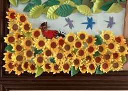 子どもたちは「お花の形を立体にするのは難しい。」「一つ一つの花びらの形が揃わない!」と苦戦しながらも「それも個性だよ。」と話しながら笑い合い、楽しく作っていました。