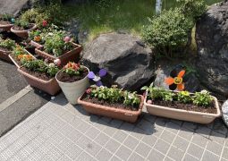 プランターの植え替え作業は、新たな苗にハロウィンの飾りもつけ、賑やかになりました。