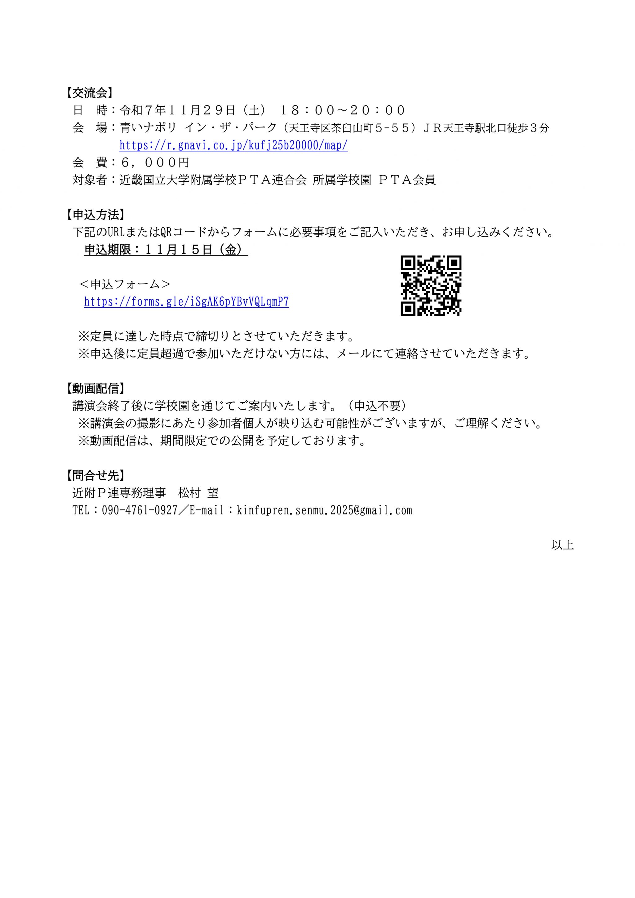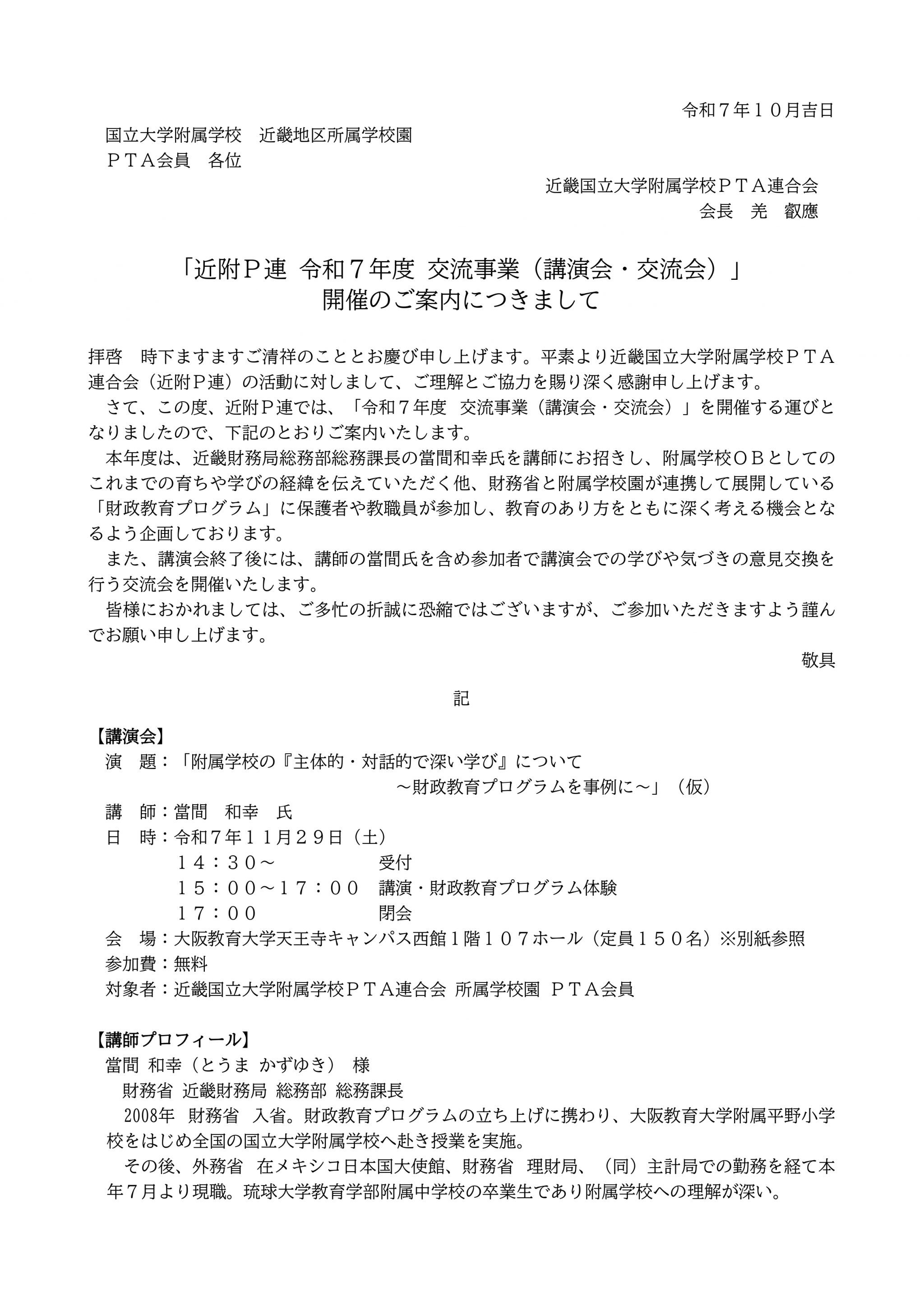近附P連 令和7年度 交流事業開催のご案内について 2025.10.06 お知らせ PDF « 前へ一覧へ 次へ » 関連するPTA活動 地域清掃活動 2025/11/11 2025.11.11 お知らせ 地域清掃活動 2025/10/14 2025.10.14 お知らせ 地域清掃活動 2025/9/9 2025.09.09 お知らせ バザーの御礼 2025.08.25 お知らせ PTA活動 広報委員会 健康安全委員会 レクリエーション委員会 図書委員会 文化委員会 ソフトボール バレーボール コンピュータ コーラス お知らせ PTA広報だより