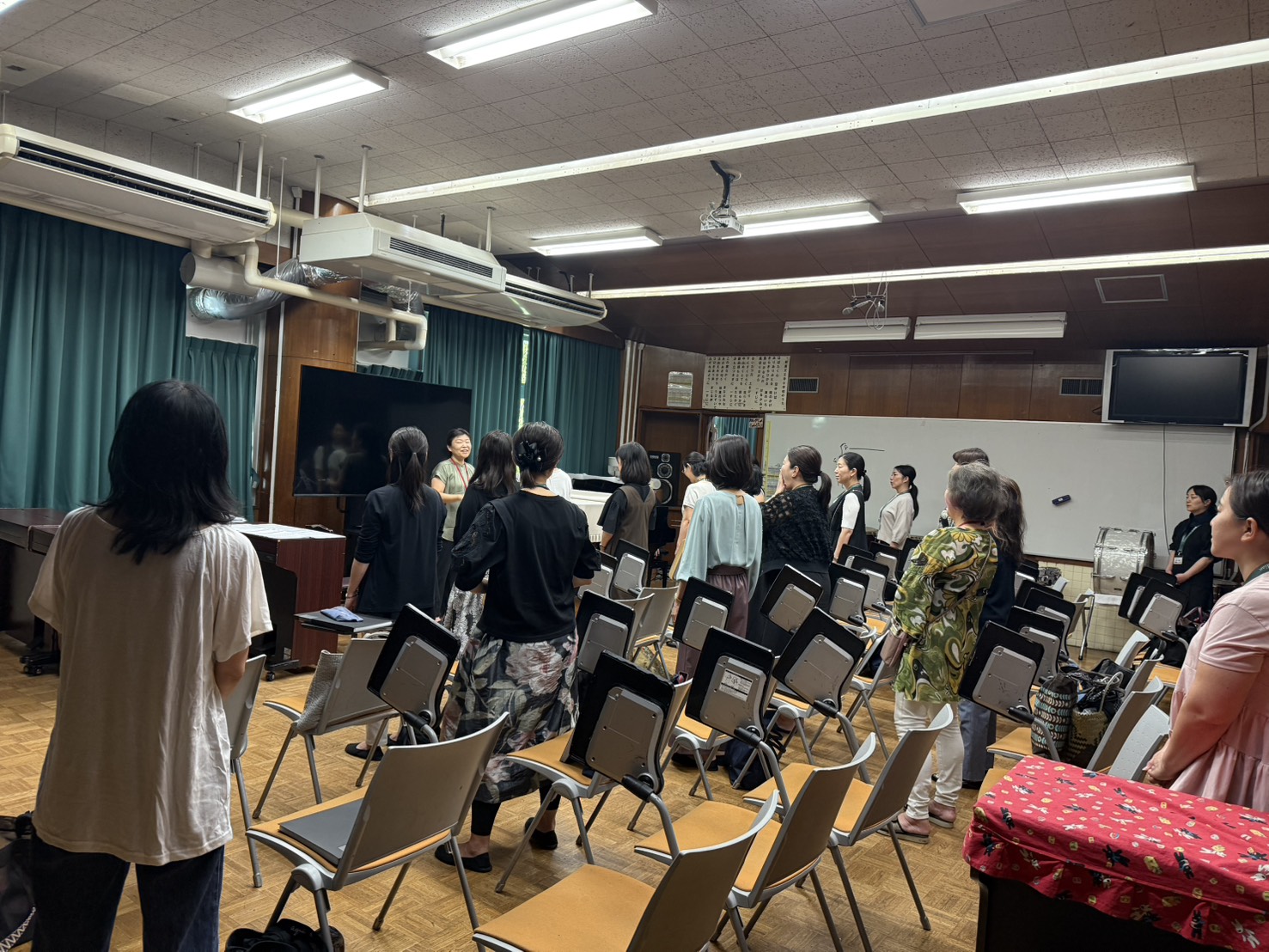 1年生の保護者の方からOGの方々まで30名を超える部員の皆様にご出席いただき、先生のご指導のもと「風になりたい」「どこまでも~How Far I’ll Go~」の2曲を練習しました。
