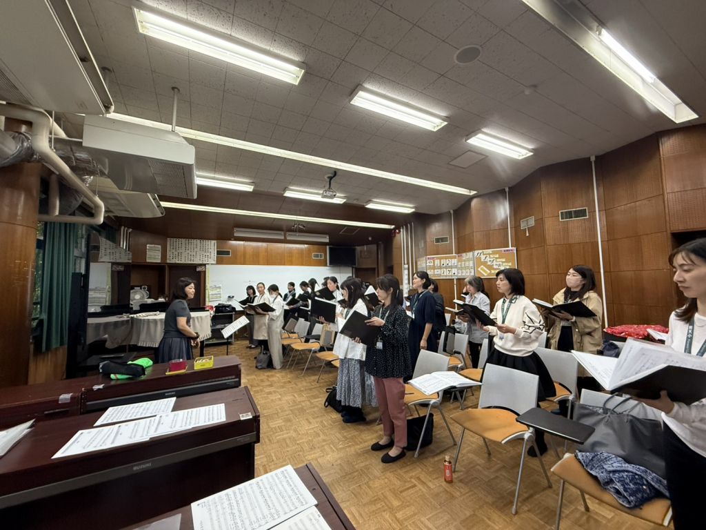 1年生の保護者の方からOGの方々まで30名を超える皆様にご出席いただき、先生のご指導のもと、「どこまでも~How Far I’ll Go~」「風になりたい」の2曲を練習しました。