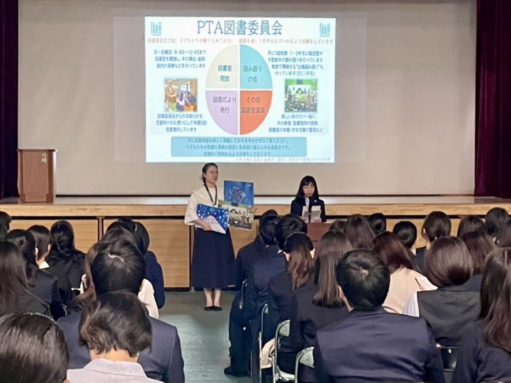 4月13日(月)に行われました委員会紹介では、たくさんの保護者の皆さまに、図書委員会ブースへお立ち寄りいただき、ありがとうございました。