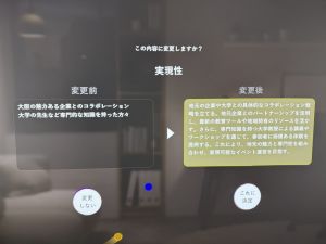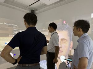そこで今回、リコージャパン株式会社さんに、AIと対話しながらアイデアを創出したり整理したりすることができる最新施設の会議室をお借りし、研究部4名で、「2月の研究会について」話し合いました。