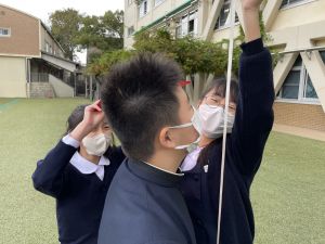 今回は、その反省を生かして取り組んだことで、どの班も声をかけ合う姿が増え、前回より正確に高さを求めることができました!