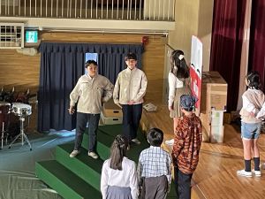 今日は学芸会の予行でした。時間の都合上,最後まで演じることはできませんでしたが,できる限り頑張ってくれました!!