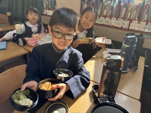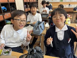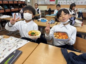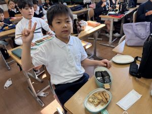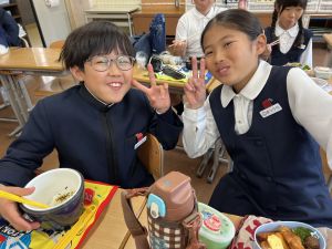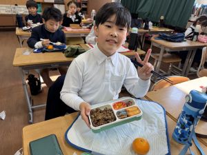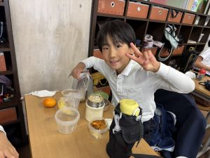 いつも給食を美味しそうに食べる148ですが、今日の方がいい顔してました笑