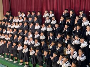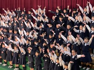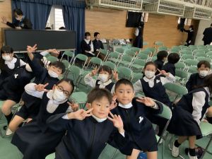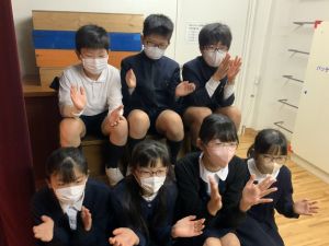 舞台袖では準備係の6年生が楽しく手拍子してくれました。