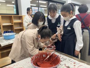 焼く前の釉薬の色を見て、焼き上がりの色を考えました。焼くと酸化するので、色が変わるそうです。