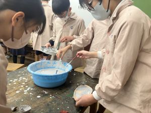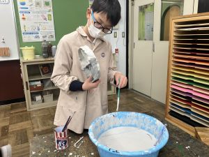 今日は、いよいよ釉薬掛けです。はじめに釉薬についてのクイズをしました。