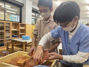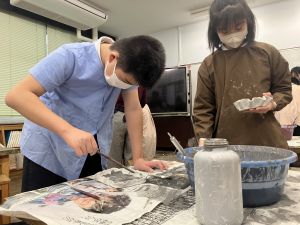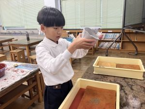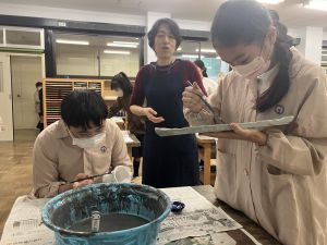 仕上がりの色は、白・緑・黄・青などがありました。その中から自分の好きな色を選んで塗りました。