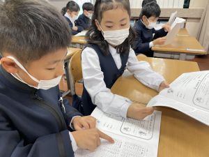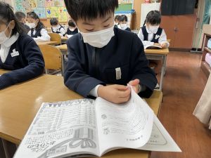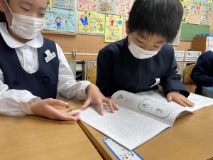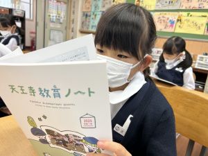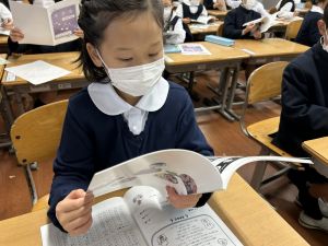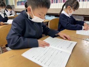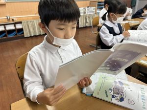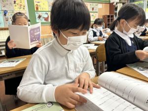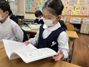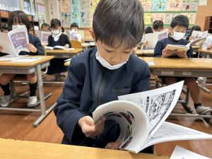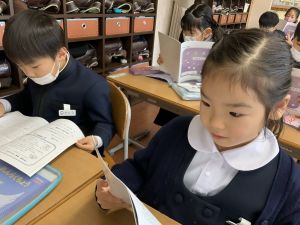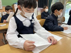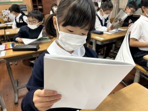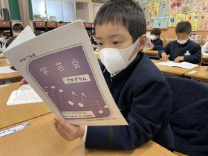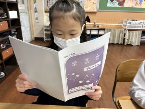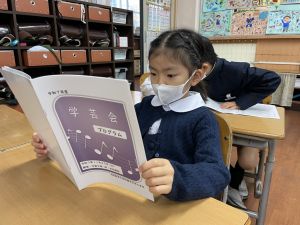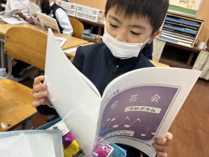 「わぁ、名前が載ってる!」と、自分の名前を見つけて喜ぶ姿もたくさん見られました。プログラムを手にしたことで、学芸会への意欲がさらに高まっているようです。