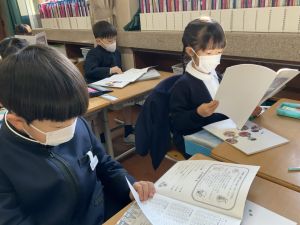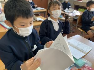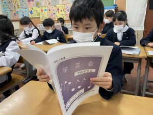 【本日の連絡】 ◯本日の配付物 教育ノート学芸会のプログラムを配付しています。ご確認ください。 |