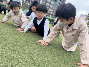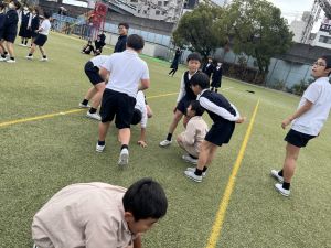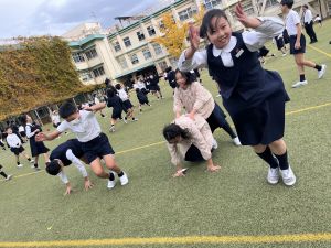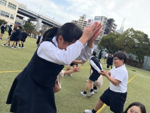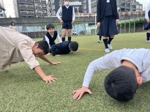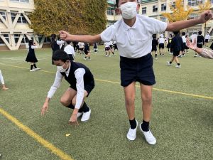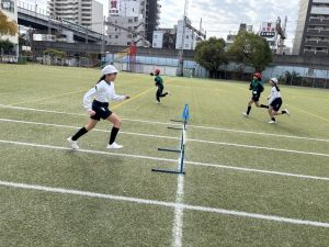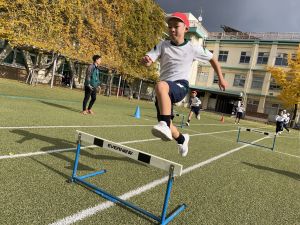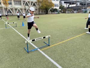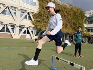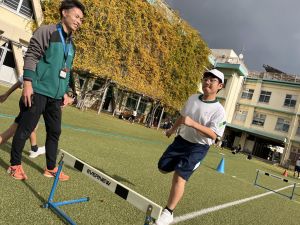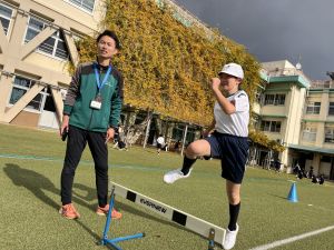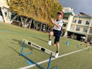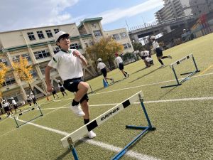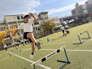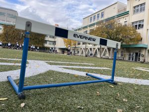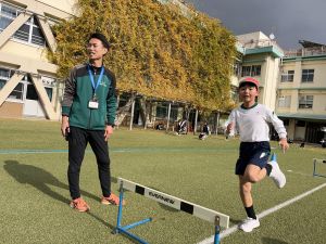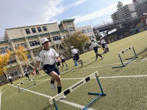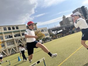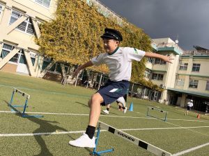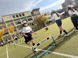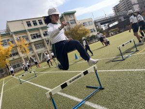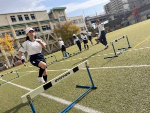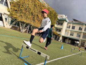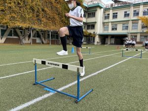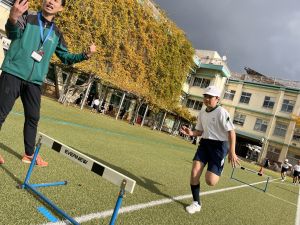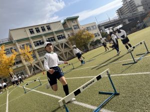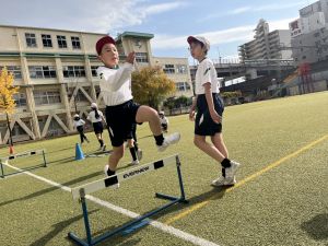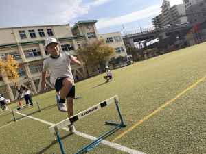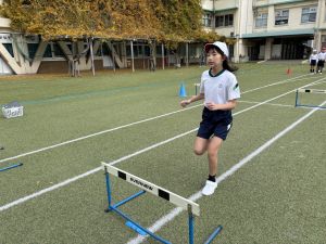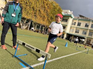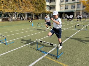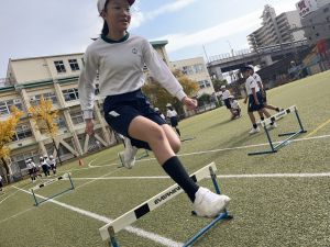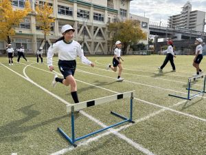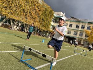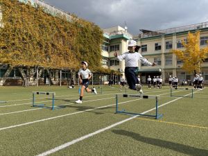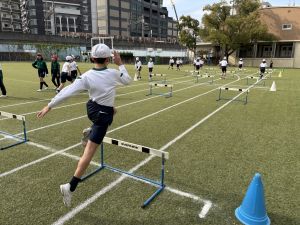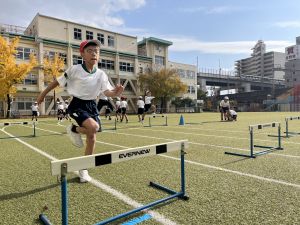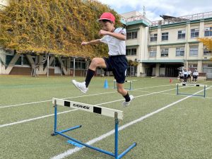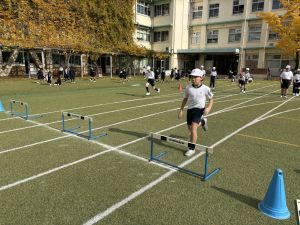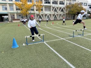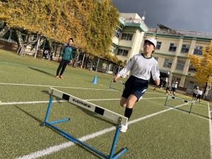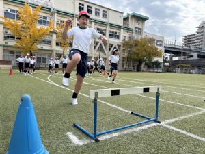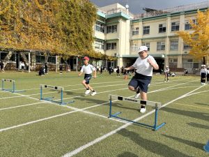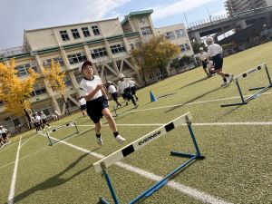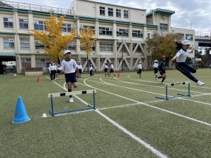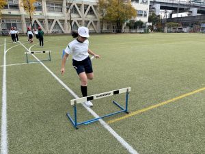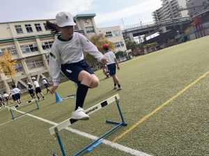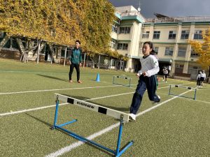 子どもたちは寒さに負けず、ハードルを越えています・・・。
