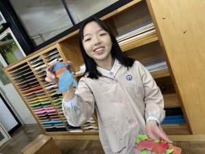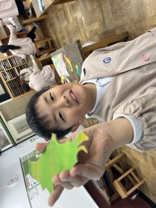 人工芝の上には、秋を彩る可愛い葉っぱ。