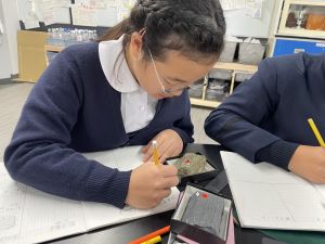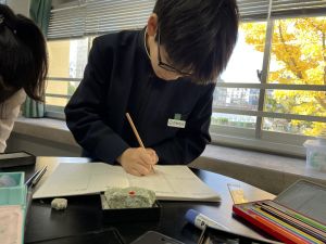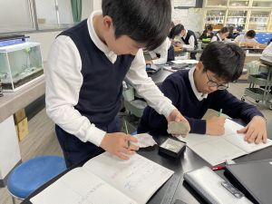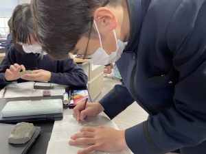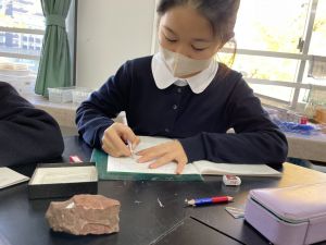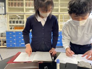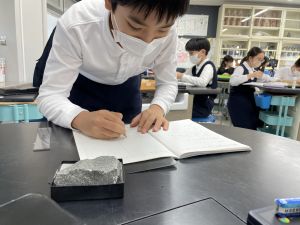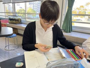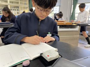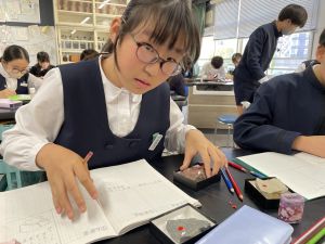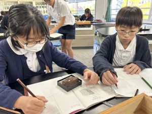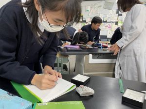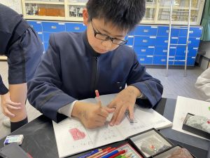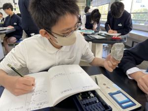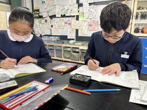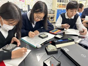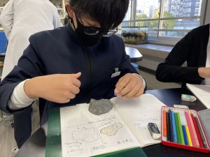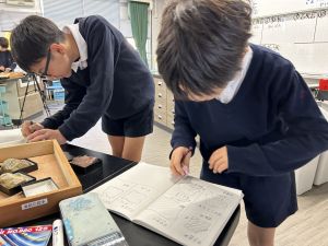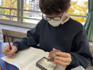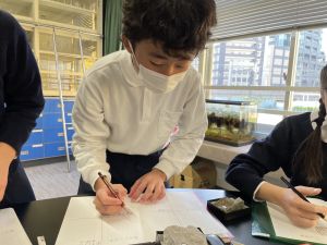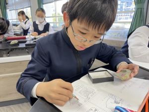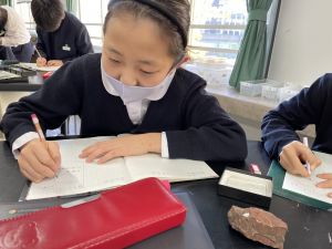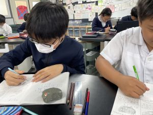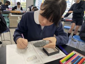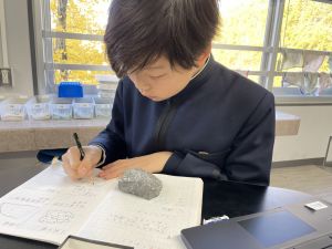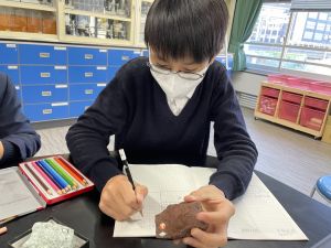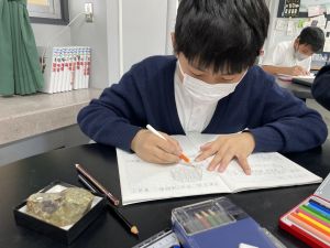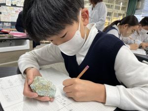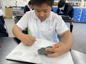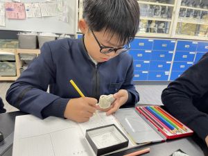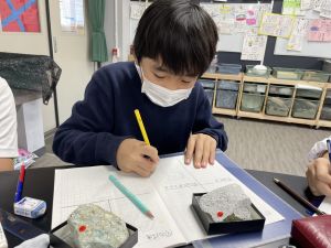 今日は理科の学習で、さまざまな岩石の観察を行いました。実物を手に取り、模様や色、質感などを丁寧に観察しながら、特徴を捉えたスケッチに挑戦しました。子どもたちは細かな違いにも気付き、集中して描き進める姿がとても印象的でした。