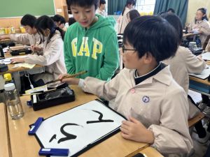学校ではよくあることですが、困っている友だちのために、自分の手を止めて、一緒に筆を探しているお友だちがいました。